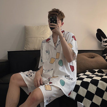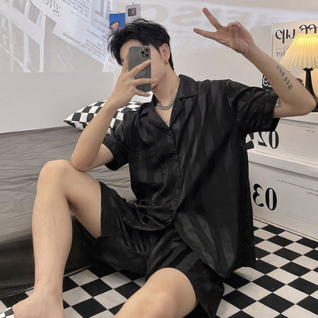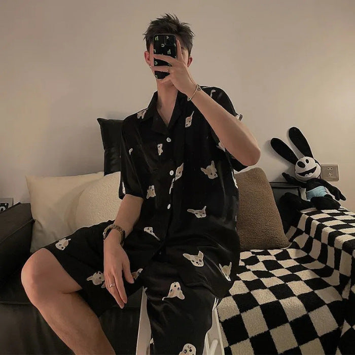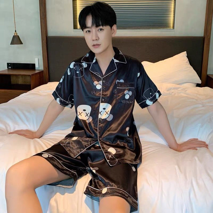 Ice Silk Men’s Pajamas – Cool & Soft Summer Short-Sleeve Set
