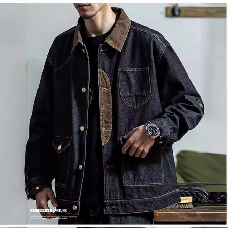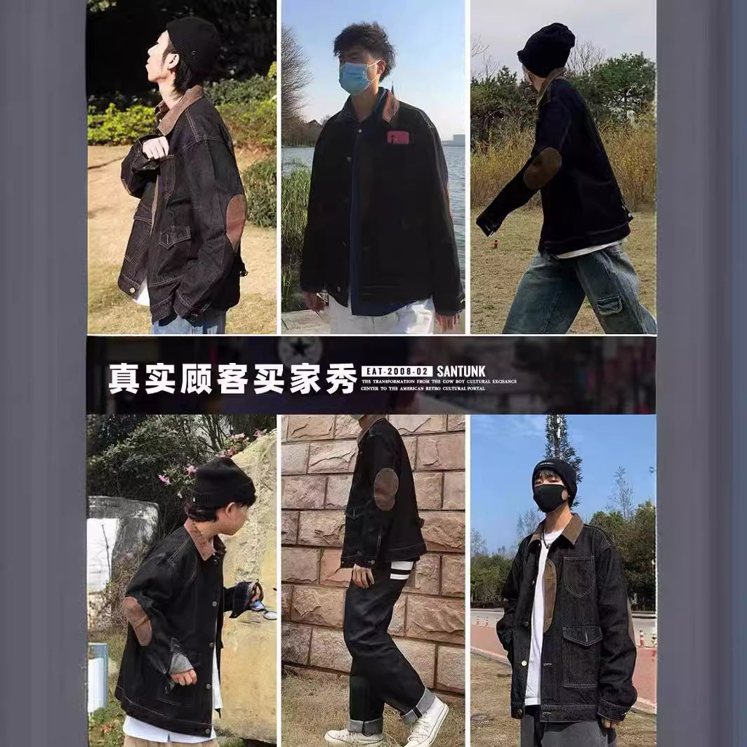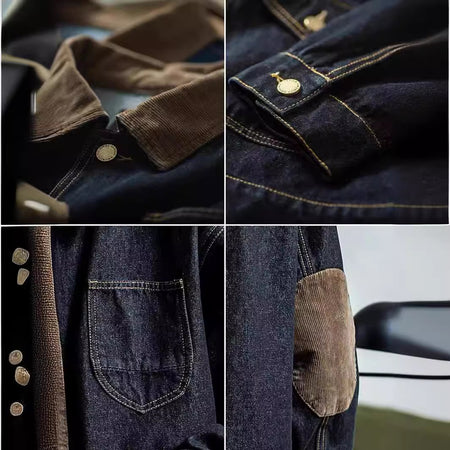 Channel rugged charm with this Men’s American Retro Denim Hunting Jacket 🧥🦌 – a bold outerwear piece blending tough street fashion and vintage utility style 🇺🇸🛠️. Crafted with corduroy patchwork and premium denim, it delivers a standout look with comfort, warmth, and durability 🍂🧵.