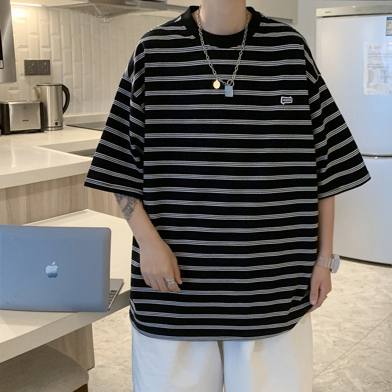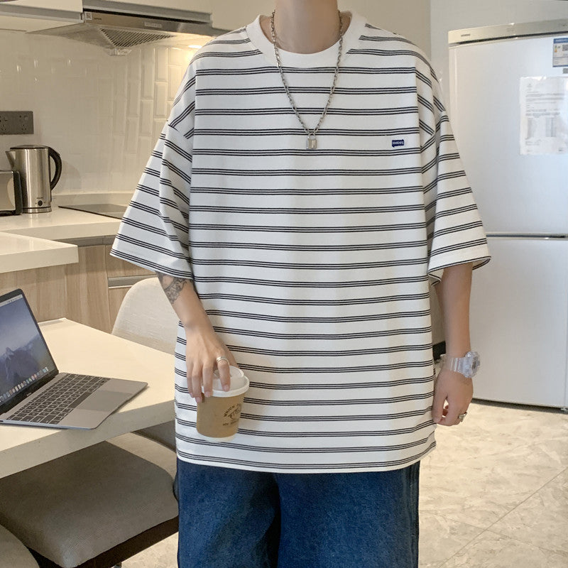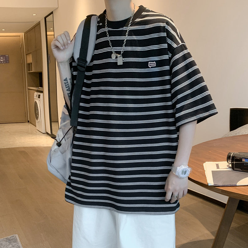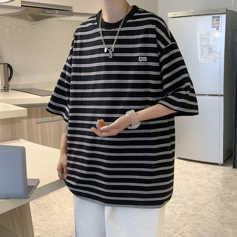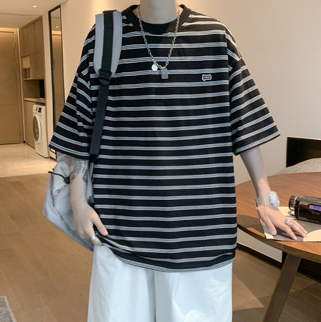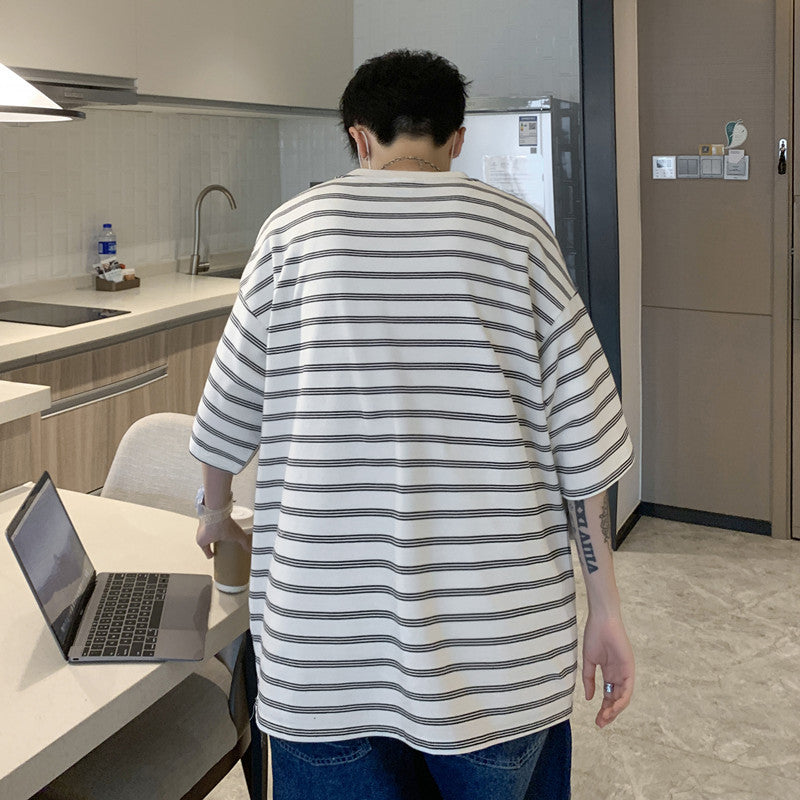 Korean-Style Striped Men's Half-Sleeve T-Shirt