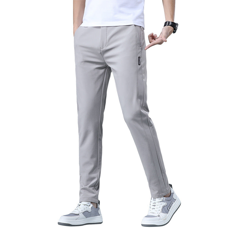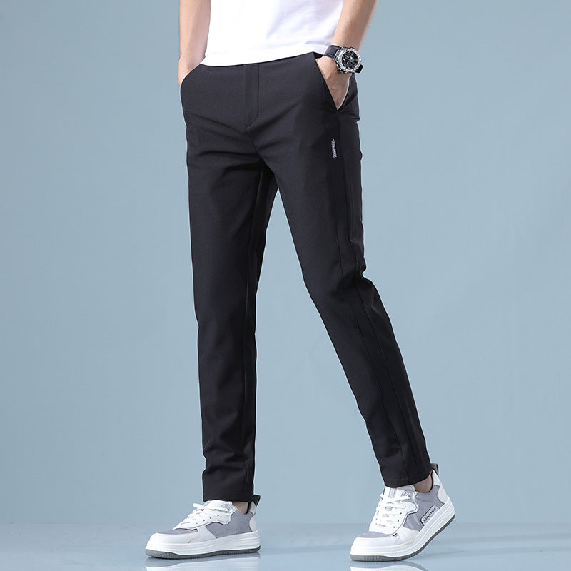 Made for the modern man, these trousers feature a lightweight ice silk fabric thatβs ultra-breathable and smooth to the touch. The slim-fit straight cut offers a trendy silhouette, while the stretchable design ensures flexibility for your daily hustle β whether it's work or weekend.