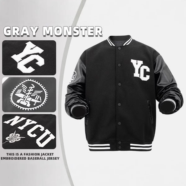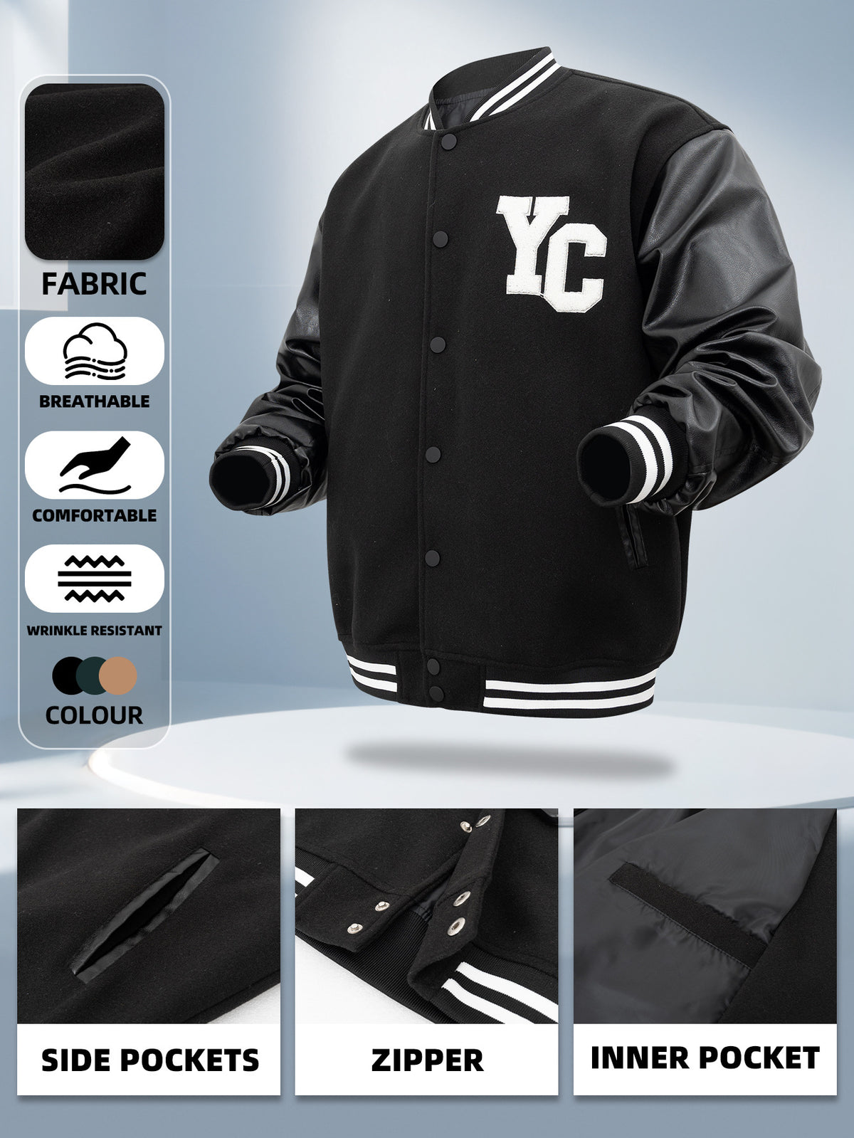 Showcase your style with this men’s PU leather baseball jacket. With detailed embroidery and a loose street silhouette, it’s perfect for spring and autumn layering.