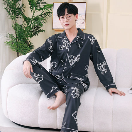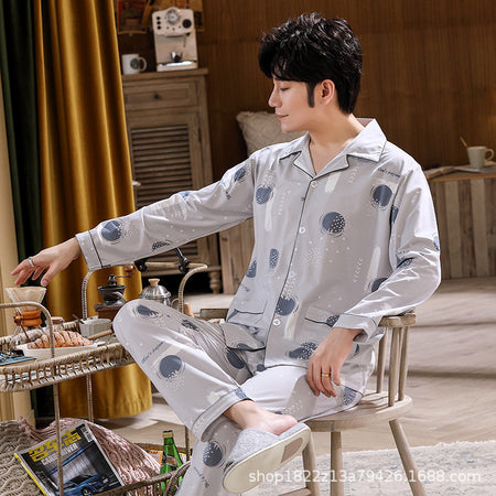 Men’s Lapel Pajamas – Knitted Cotton Cardigan Home Suit