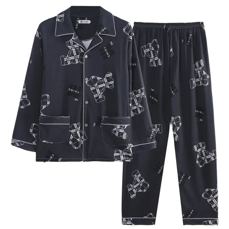 Stay cozy and stylish with our Men’s Spring and Autumn Winter Pajamas 👕. Made from soft, knitted cotton, this long-sleeve cardigan suit features a unique printed design that adds a touch of personality to your loungewear. Whether you’re lounging at home or relaxing with friends, this home suit offers the perfect combination of comfort and style. 🌙