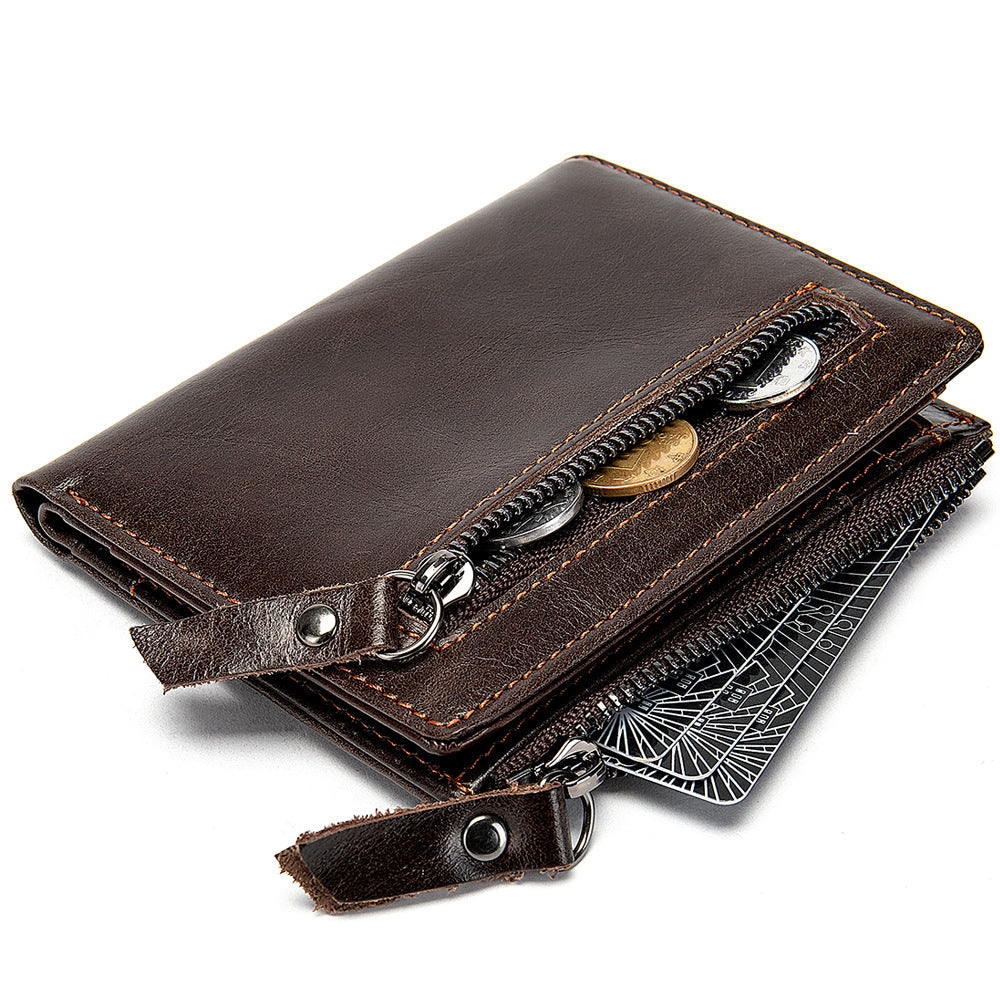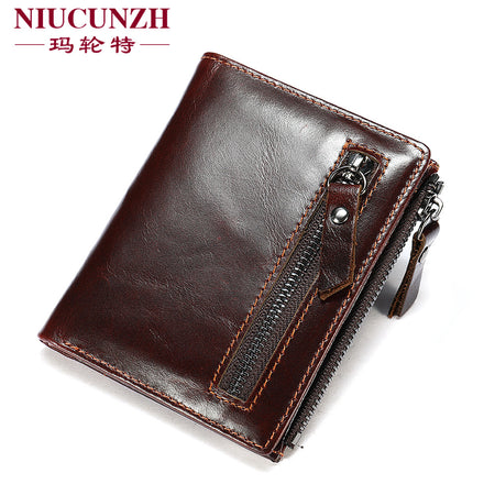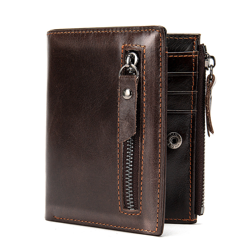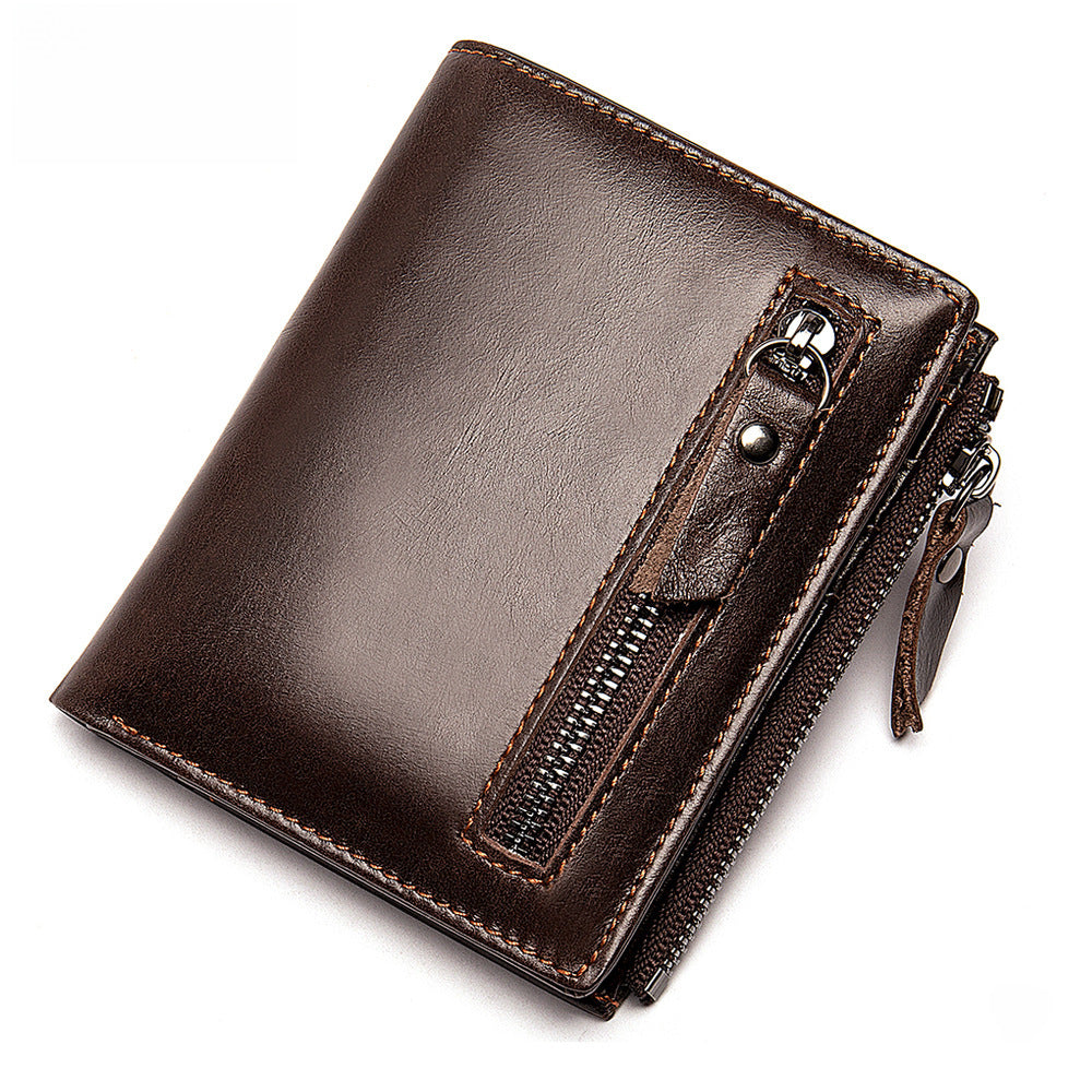 Stay stylish and secure with this wax leather wallet featuring RFID protection and a gold clip! Perfect for Nepal’s men who want vintage charm and modern anti-theft technology combined in one personalized zipper wallet. 🔐✨