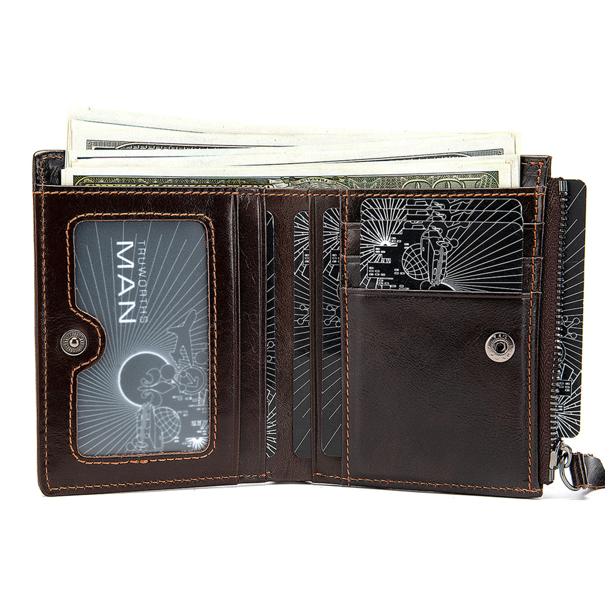 Men’s Wax Leather RFID Anti-Theft Wallet – Gold Clip