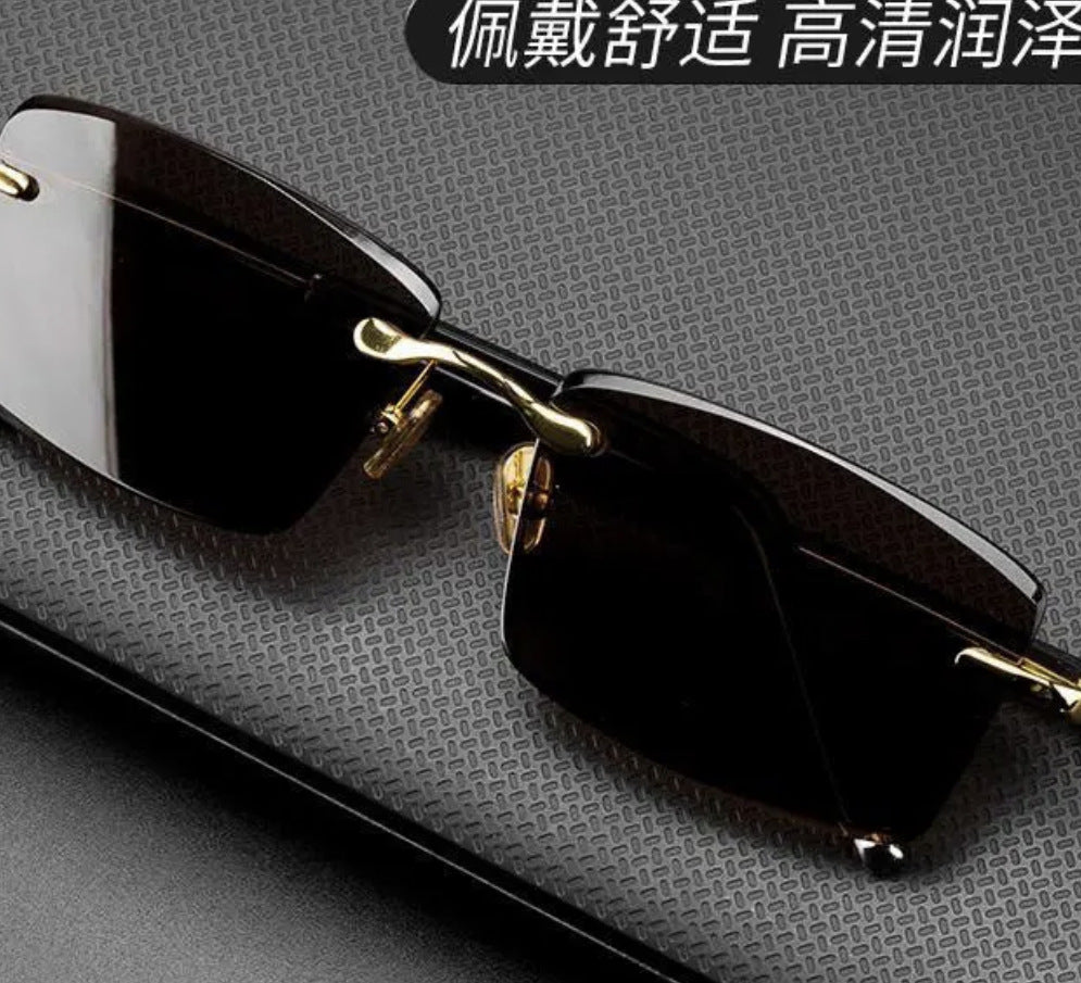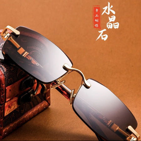 Crystal Frameless Sunglasses | High-End Green Lenses