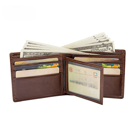 Men’s Retro Cowhide Wallet - Multi-Card & Silver Short Bag