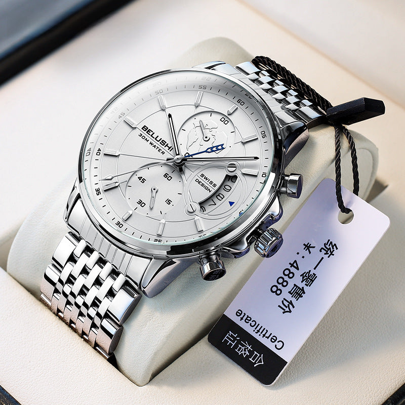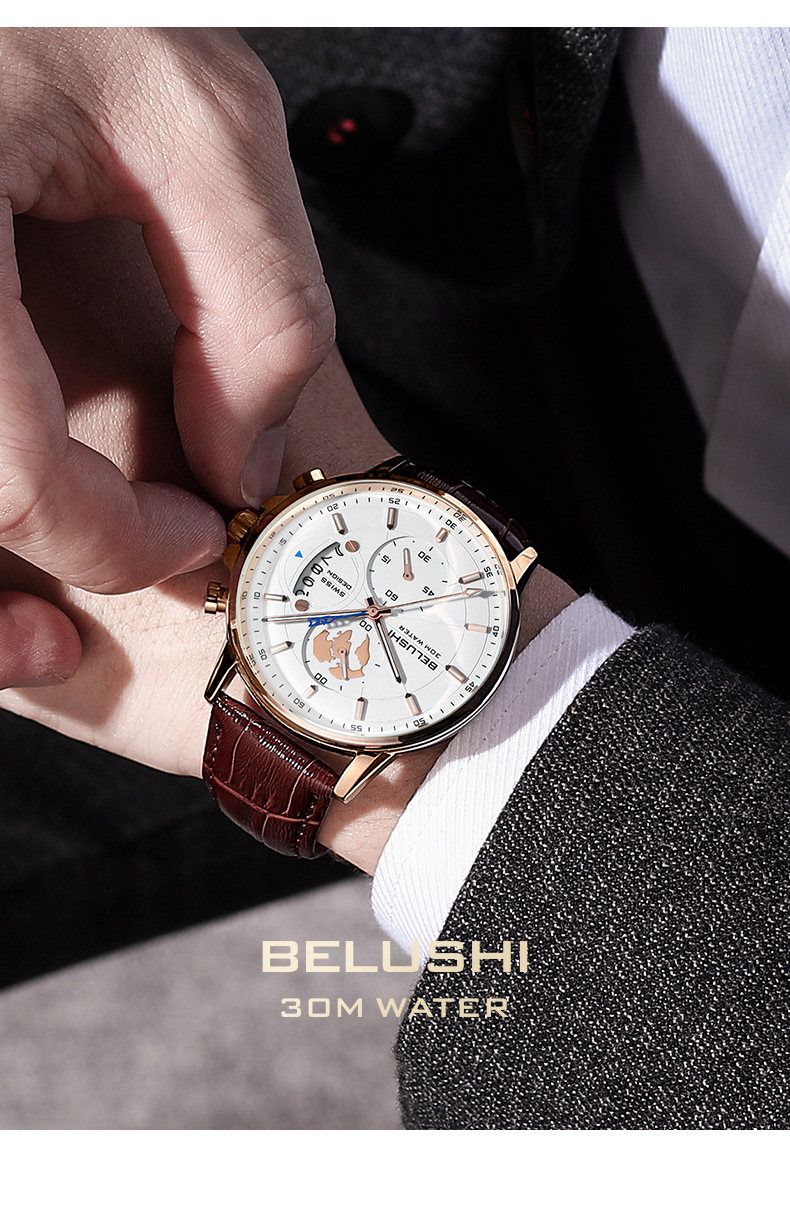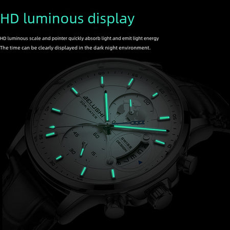 Shine bright and stay on time with our Men’s Luminous Quartz Watch! ⌚✨ Perfect for Nepal’s go-getters 🇳🇵, this business-class waterproof watch features a three-eye timing function and a sleek leather and steel belt design that matches every moment — day or night! 🌞🌙