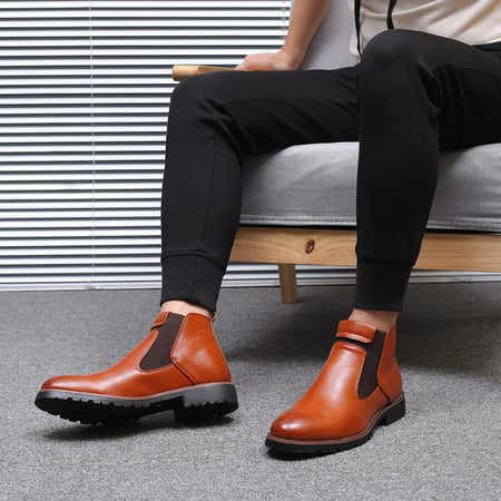 Men’s Slip-On Leather Boots – Chelsea Style, Plus Size