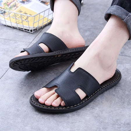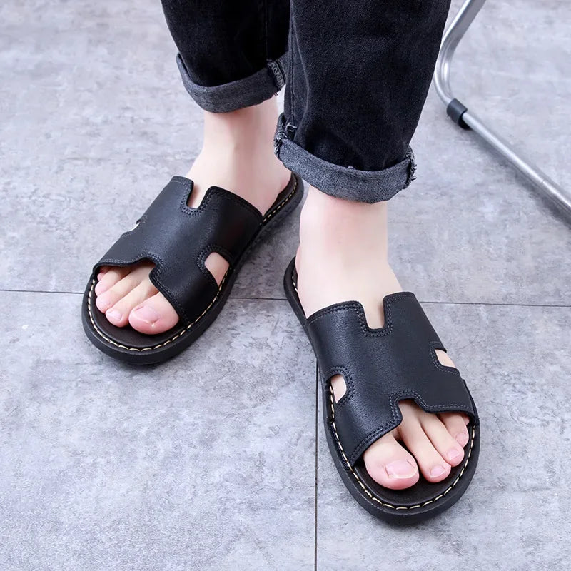 Men’s Leather Slides | Non-Slip Outdoor Casual Sandals