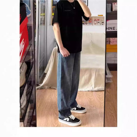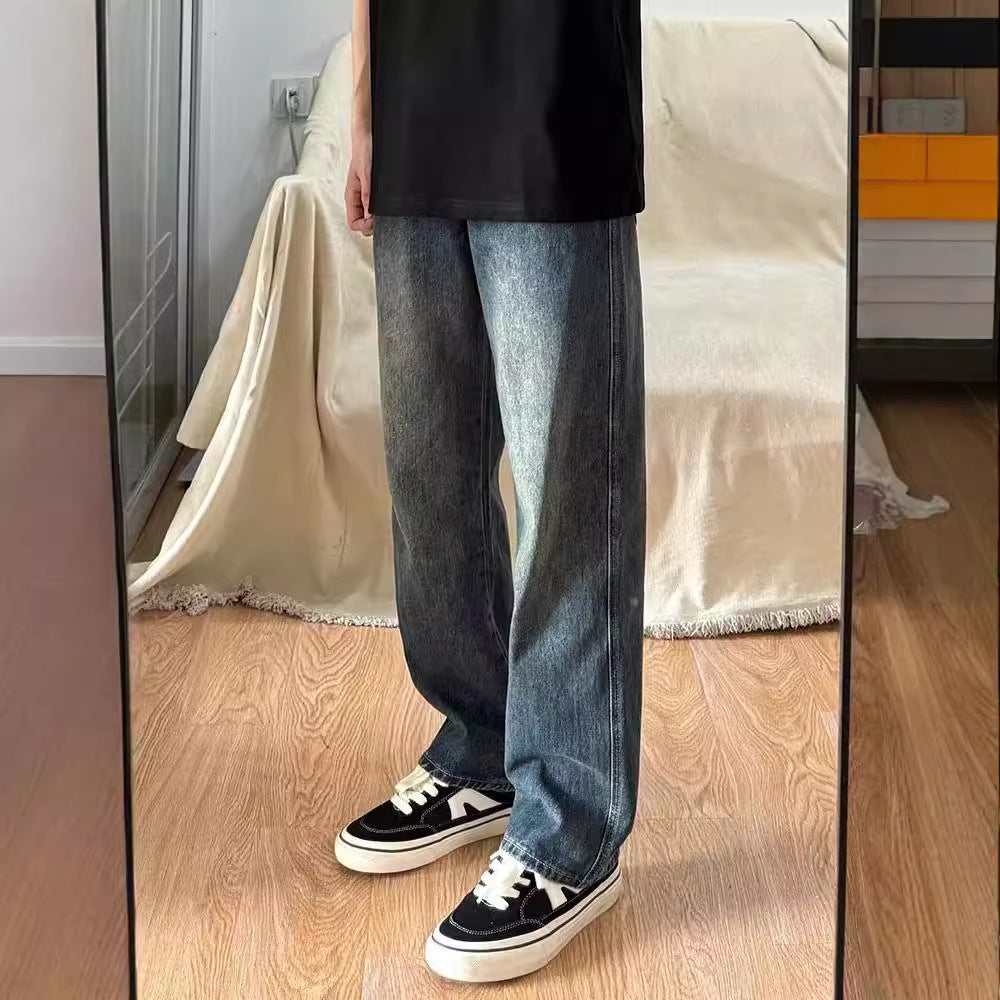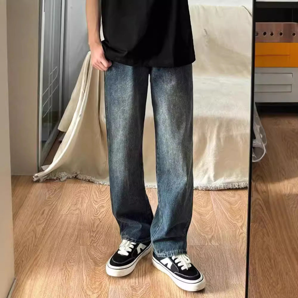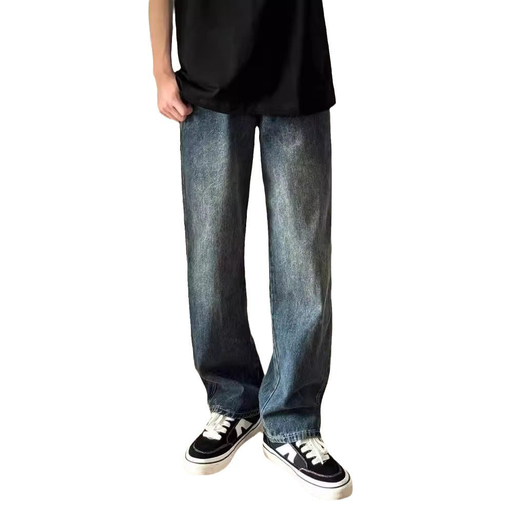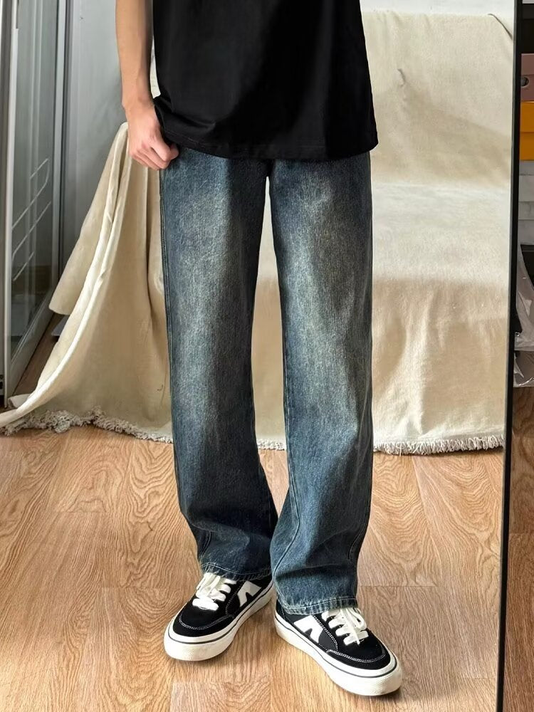 Men’s Retro Blue Wide-Leg Jeans | Loose Fit Spring Style