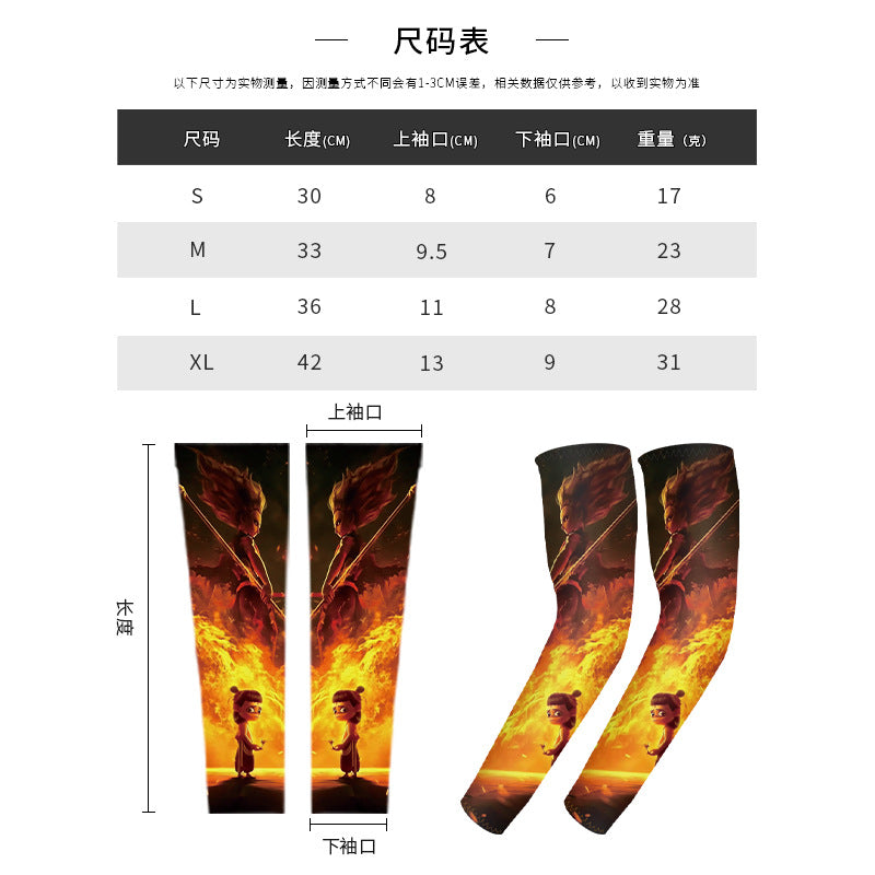 Crafted from lightweight, breathable ice silk and Lycra fabric, these sleeves offer top-notch UV protection and keep your arms cool during intense summer rides ☀️❄️. The vibrant Nezha print adds a unique, cultural touch that stands out on every cycling route or outdoor adventure 🏞️.