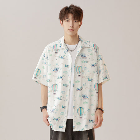 Men’s Thai Floral Retro Cuban Collar Loose Summer Shirt