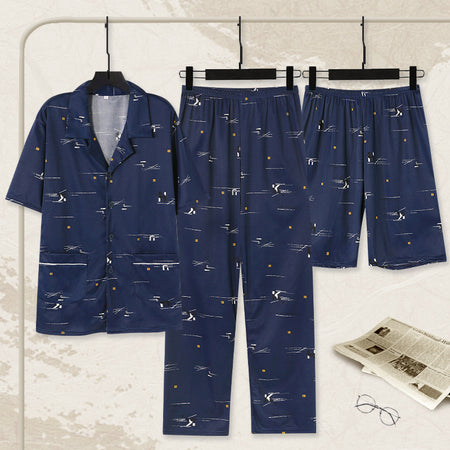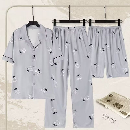 Keep cool and comfortable with our 100% Cotton Men’s Summer Pajama Set 👕. Made from soft, breathable cotton, this three-piece set features a short-sleeve top and shorts, making it perfect for the warmer months. The lightweight fabric ensures that you stay fresh and relaxed all day or night, whether you’re lounging at home or resting after a long day.
