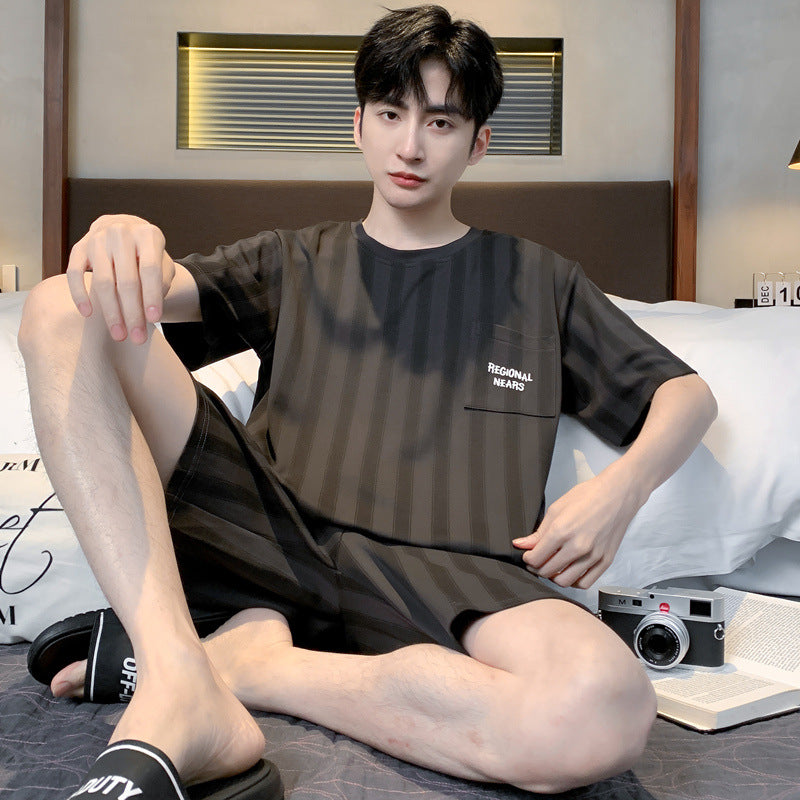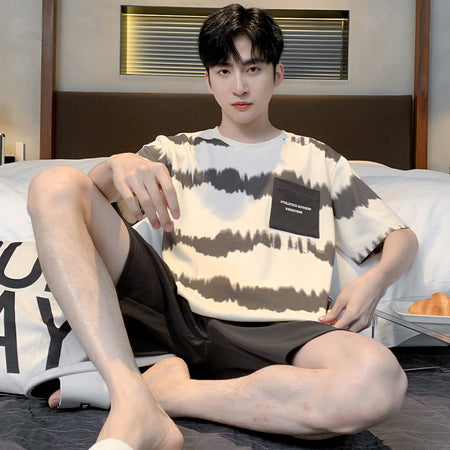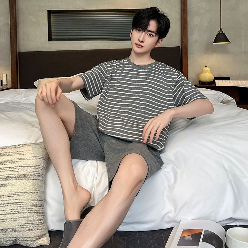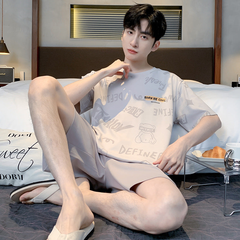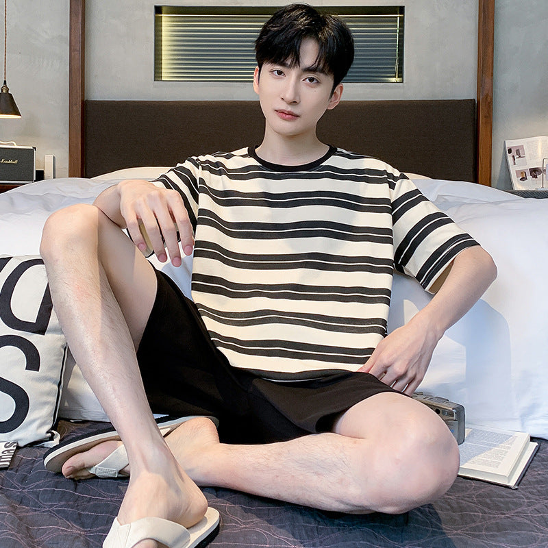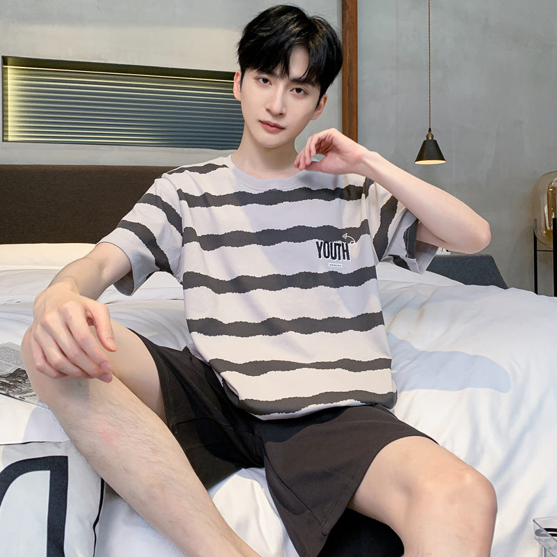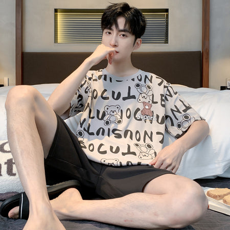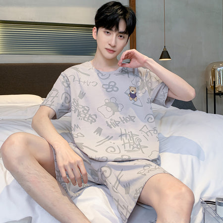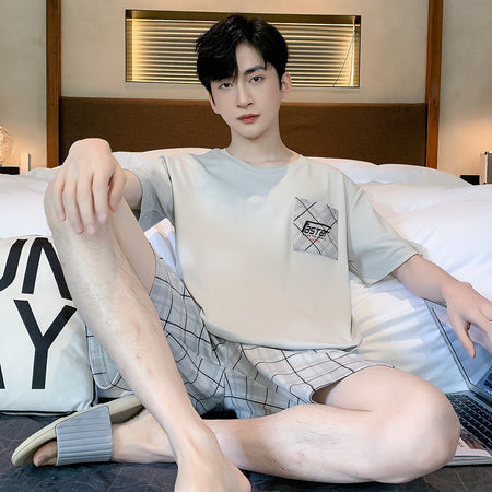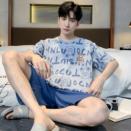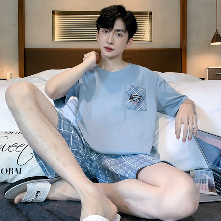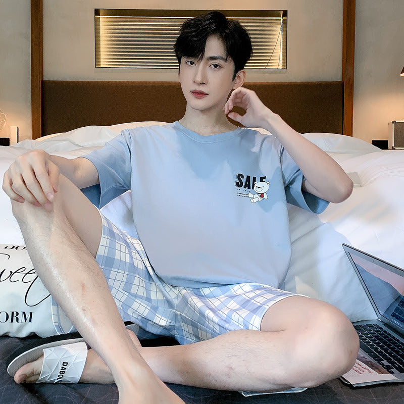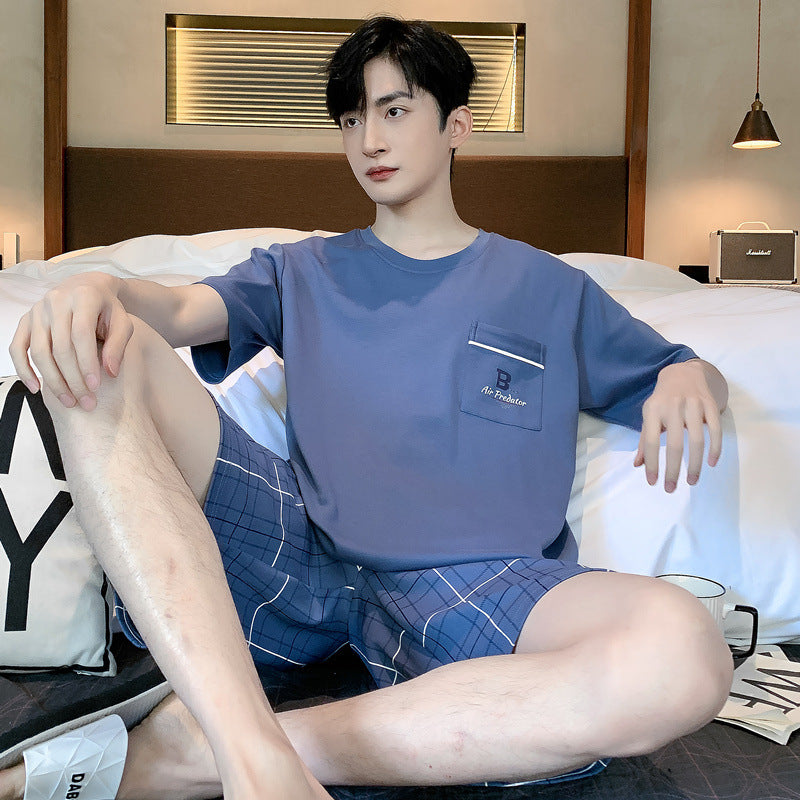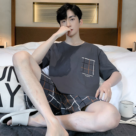Pure Cotton Men’s Pajamas – Summer Short Sleeve & Shorts Set