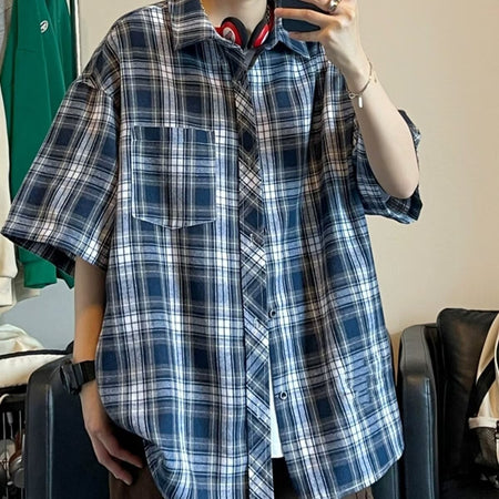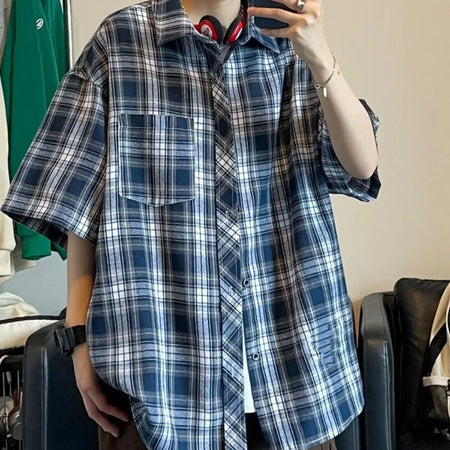 Add a touch of retro flair to your summer wardrobe with the Men’s Plaid Short Sleeve Shirt. 🌞 This unique shirt blends Japanese style with American high street fashion for a cool, trendy look. The loose, comfortable fit makes it perfect for casual outings, while the bold plaid pattern adds a vibrant edge to any outfit. 🧑🎤🌿