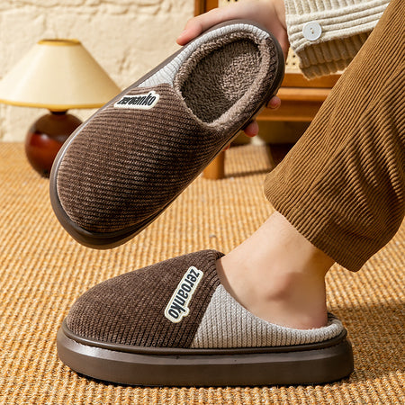 Plus Size Men's Cotton Slippers 2025 Warm Non-Slip Indoor & Outdoor