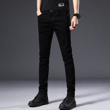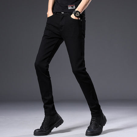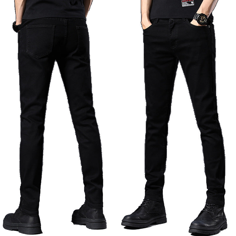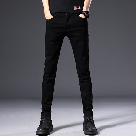 Pure Black Slim-Fit Men’s Jeans – Korean Style Skinny Pants