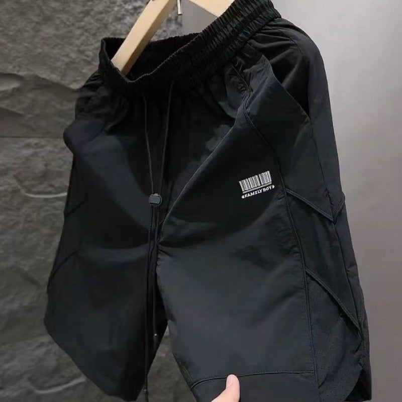 Trendy Embroidered Ice Silk Shorts Summer Style for Men