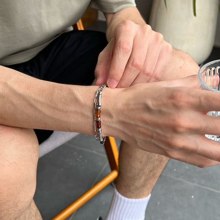Red Agate Bracelet for Men – Hip-Hop Titanium Steel Style