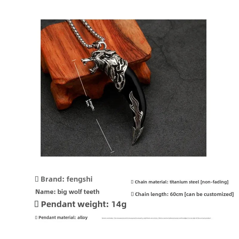 Resin Spike Pendant Necklace – Retro Dog Tooth Chain for Men