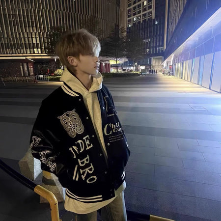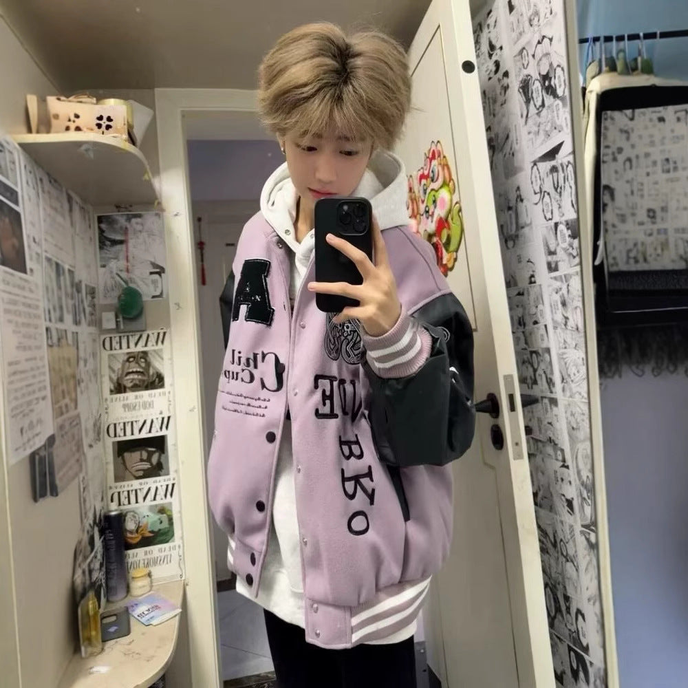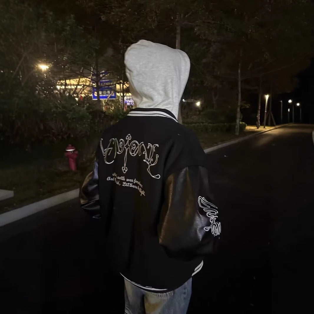 Retro Embroidered Baseball Jacket – Unisex Loose Casual Coat