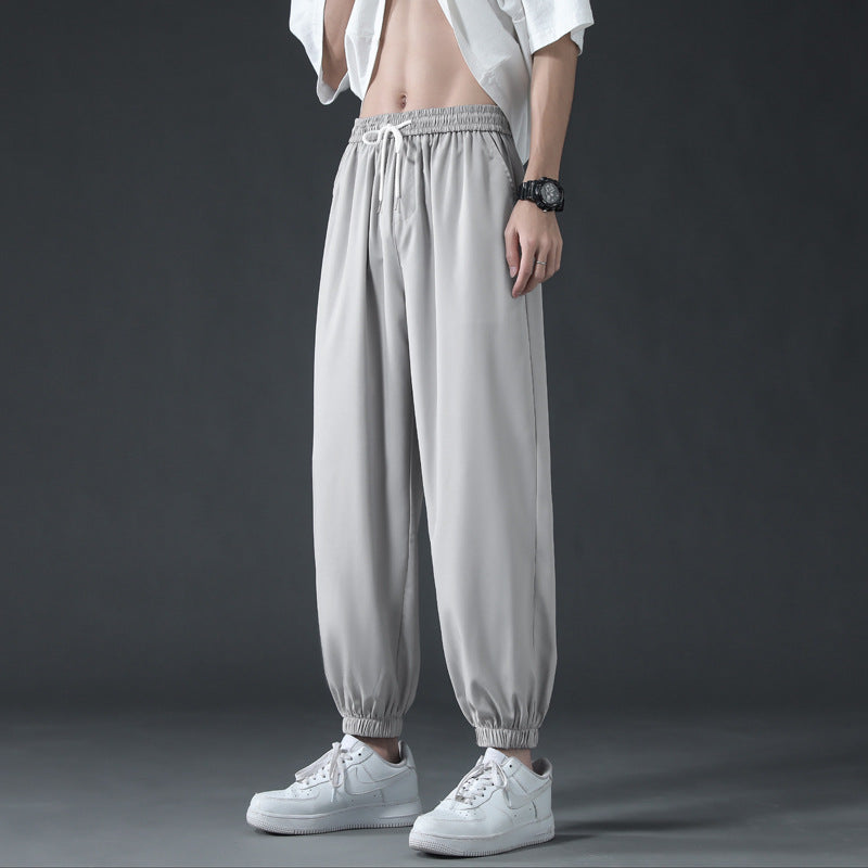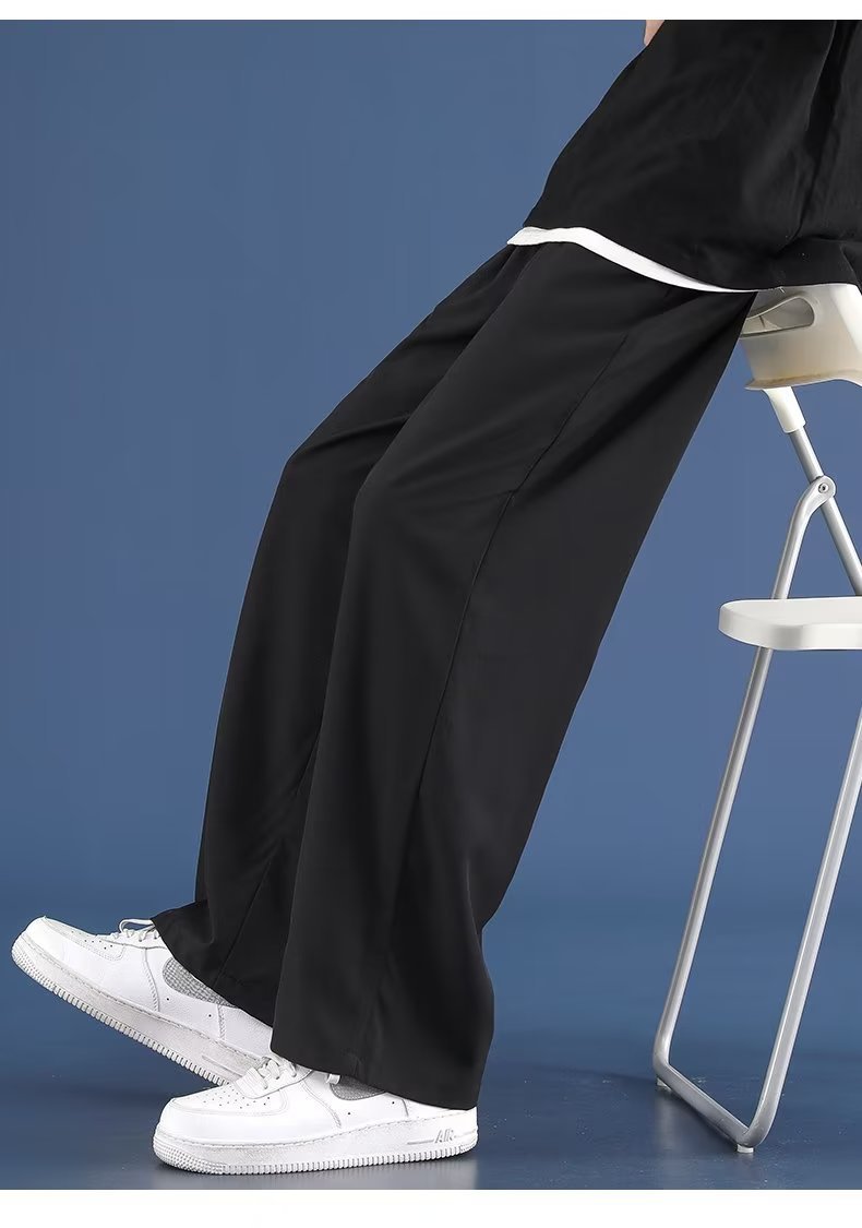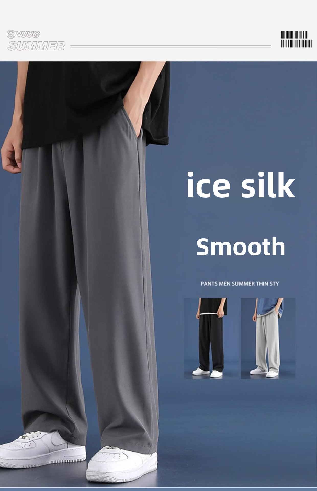 Men’s Ice Silk Loose Pants - Summer Hong Kong Style