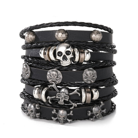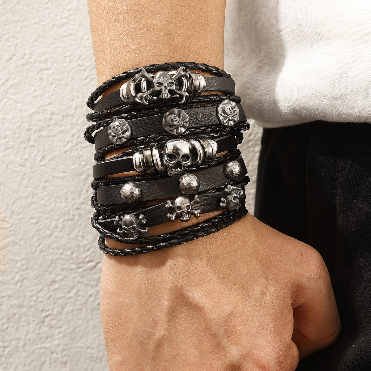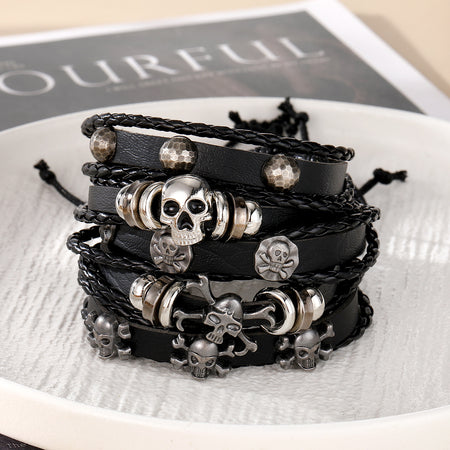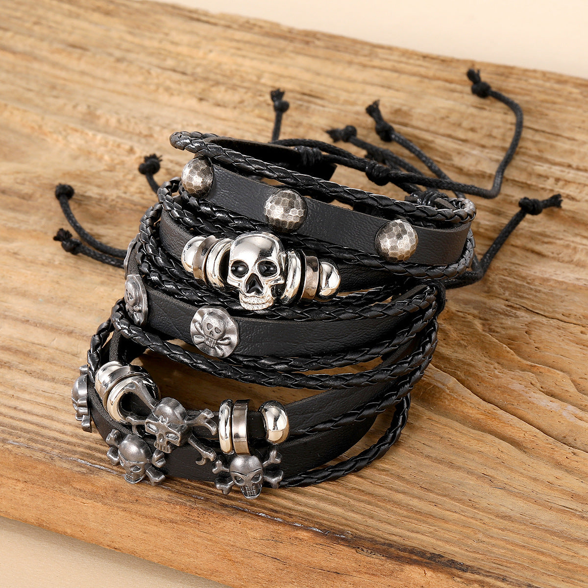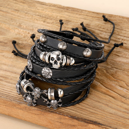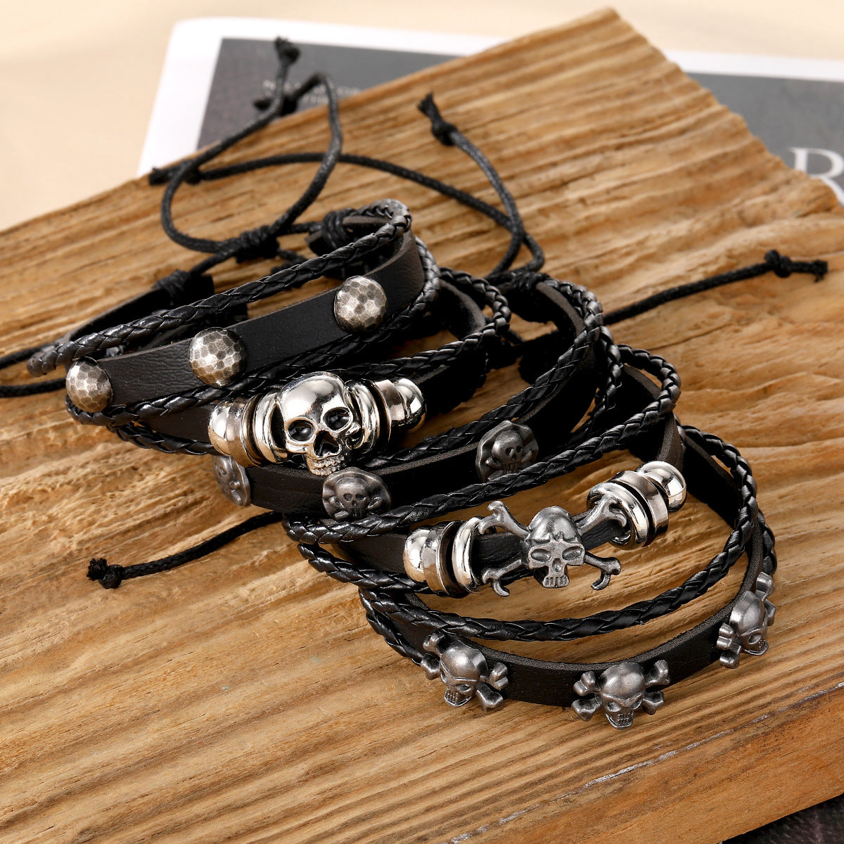 Skull Leather Bracelet – Halloween Punk Style for Men