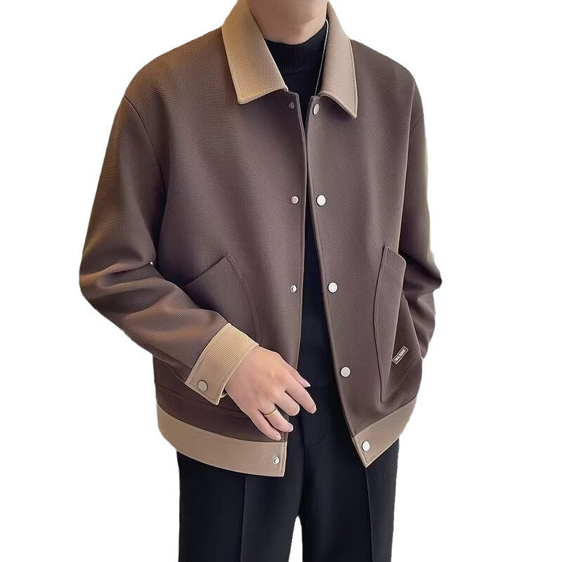 tep into effortless style with this Color-Matching Lapel Jacket – the perfect fusion of Korean fashion 🇰🇷 and street-smart workwear vibes 🛠️. Whether you're heading out for a casual meet-up or layering up for a breezy day, this jacket's got your back – literally! 😎