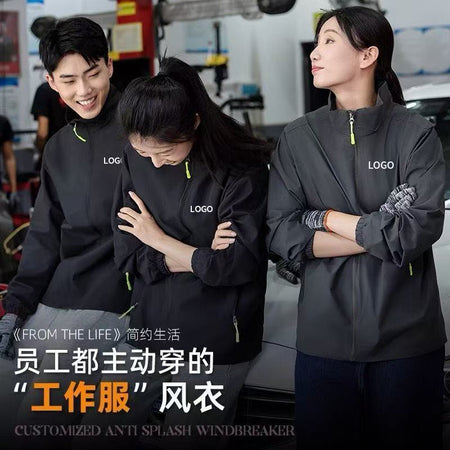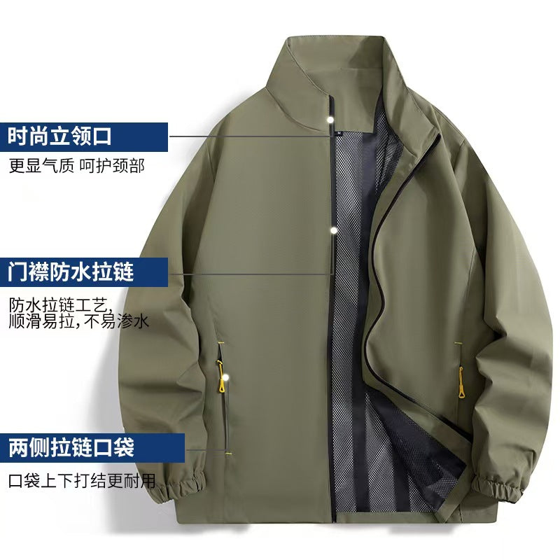Take on the elements with this spring and autumn outdoor windbreaker, designed for men and women. Its windproof build and customizable logo make it ideal for team or corporate uniforms.