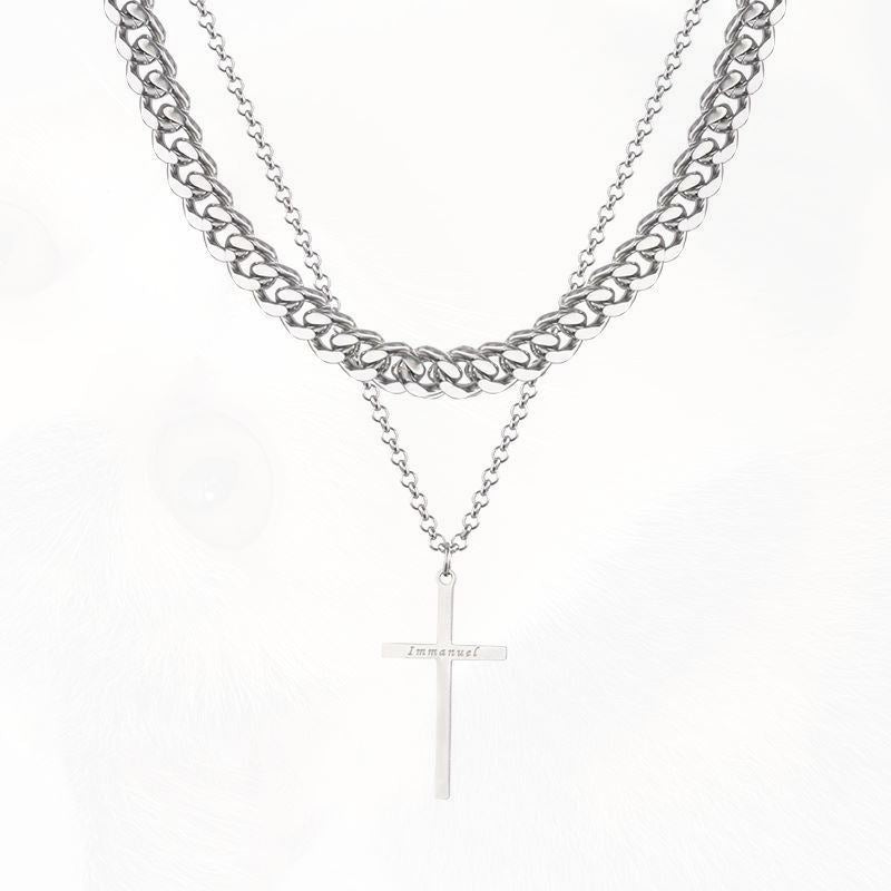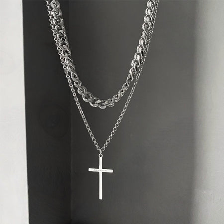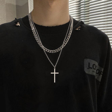 The layered cross pendant adds a powerful, fashion-forward vibe that fits perfectly with oversized tees, hoodies, or layered streetwear looks. Whether you're vibing at a concert, chilling with your crew, or flexing on Insta, this piece brings serious swagger and individuality 🎧📸