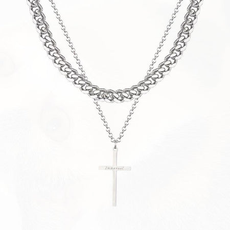 Stacked Cross Cuban Chain – Men’s Hip-Hop Necklace