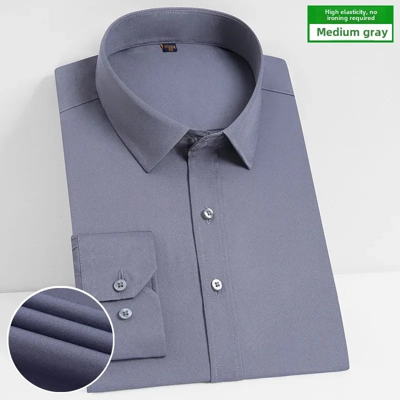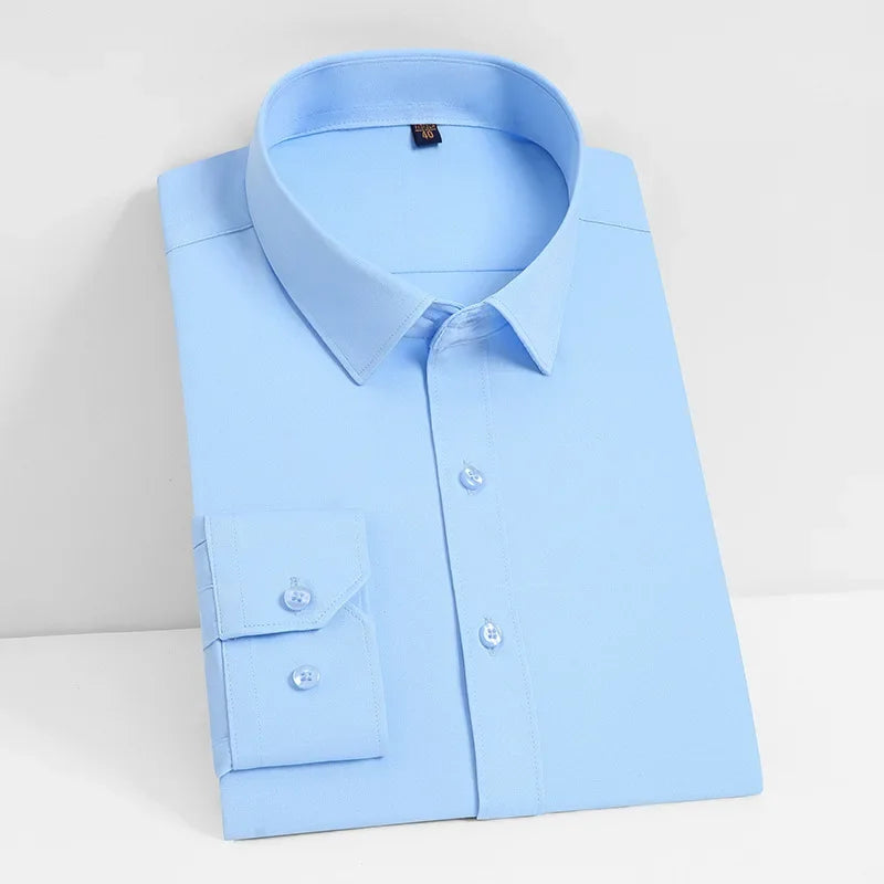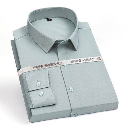 Stay sharp all day long with this pure white slim-fit dress shirt 👔 — your perfect companion for interviews, meetings, and professional events. This shirt blends Korean style with functional comfort, giving you a polished look without the hassle of ironing. 👌✨