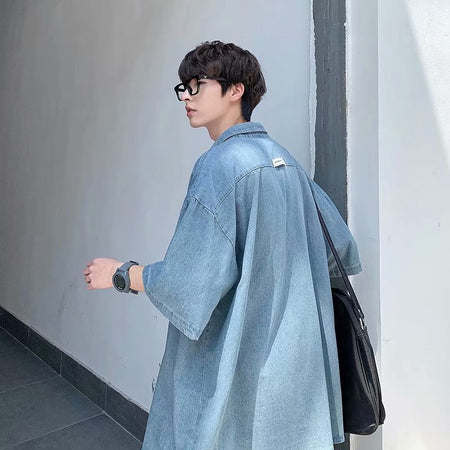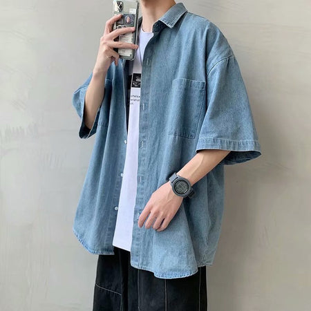 Embrace a mix of casual and stylish with the Men’s Denim Short-Sleeve Shirt—a perfect combination of workwear functionality and trendy Korean fashion. 👖✨ This loose-fitting, all-matching shirt is ideal for summer, offering breathable comfort and a rugged yet handsome look. Whether you're out for a day of work or casual hangouts, this shirt will keep you looking sharp! 💪👕