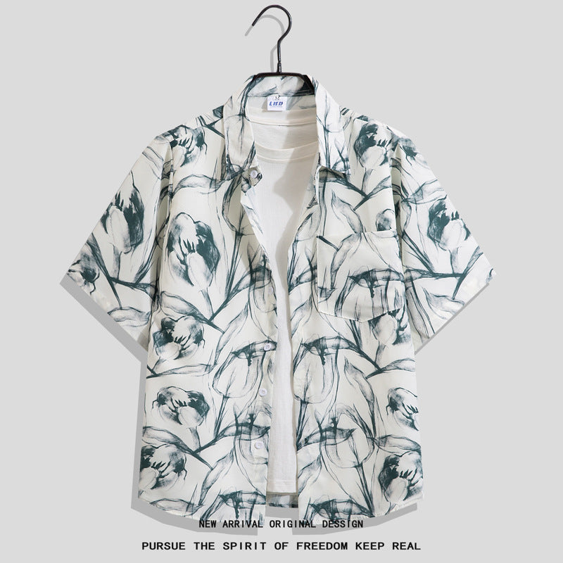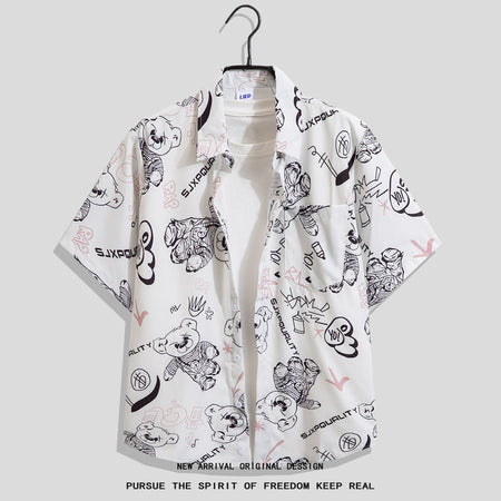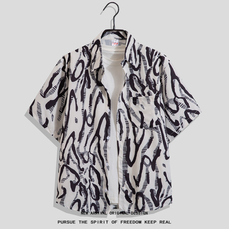 Men’s Summer Graffiti Hip-Hop Loose Casual Hawaiian Shirt