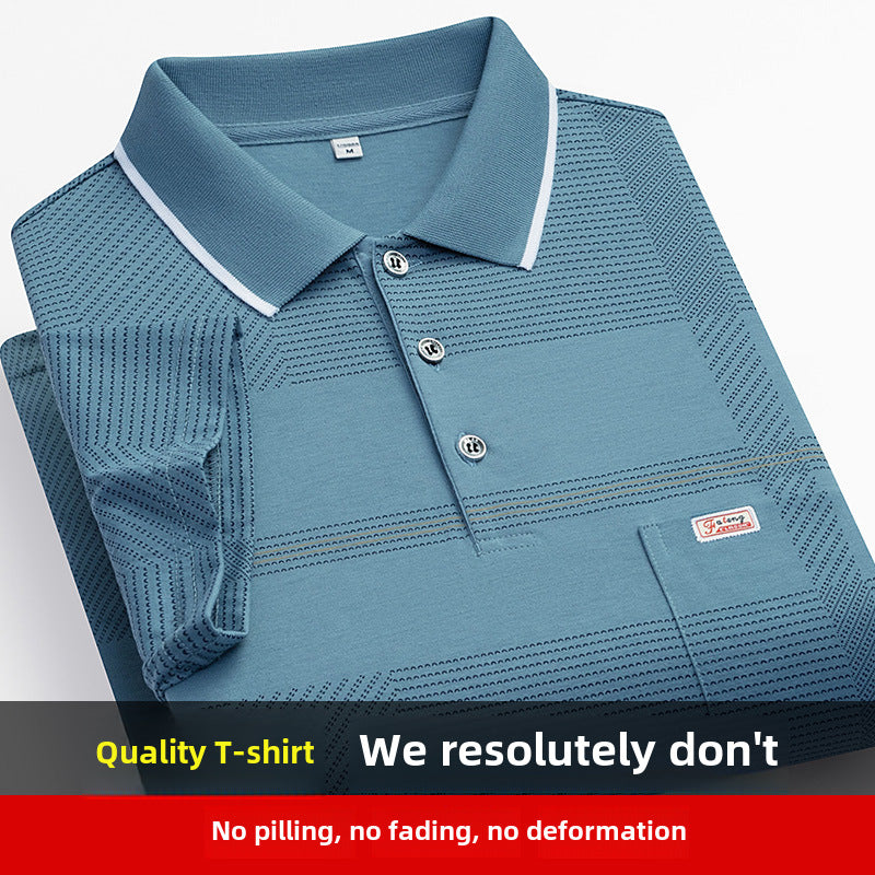 Men’s Pocket Polo T-Shirt – Summer Loose Fit for Elderly