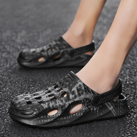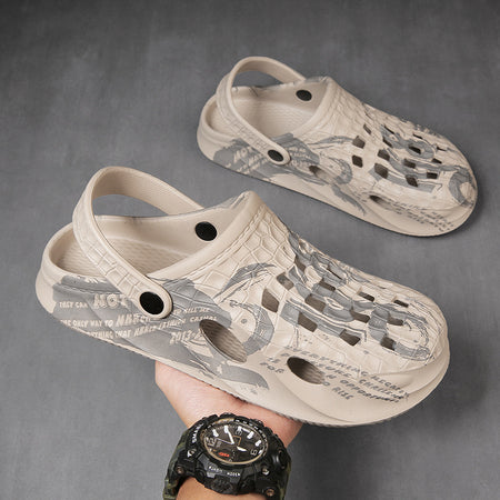 Trendy Men’s Cave Shoes EVA Hollow Beach Slippers with Thick Sole