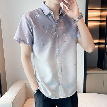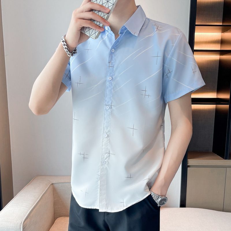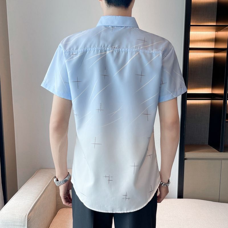 Business Casual Gradient Shirt Short-Sleeve Square Collar
