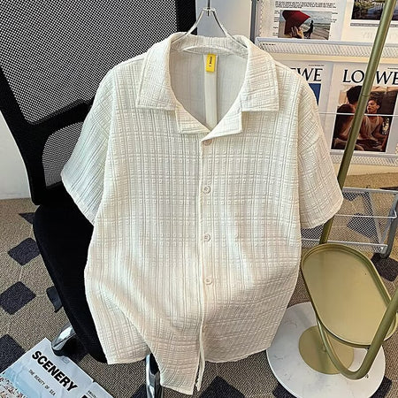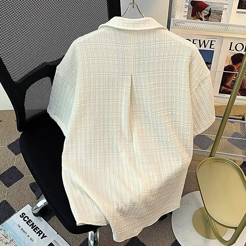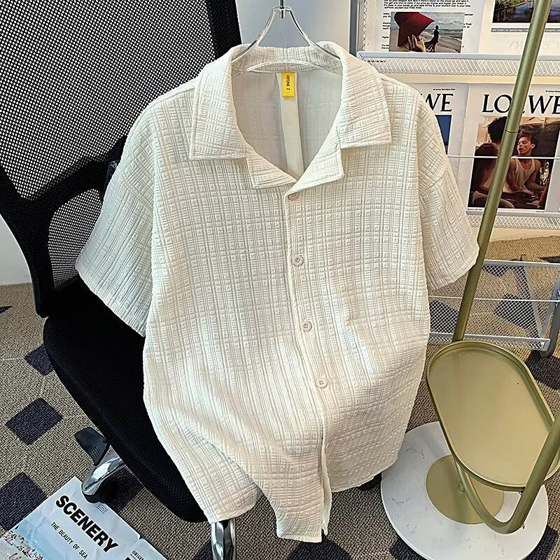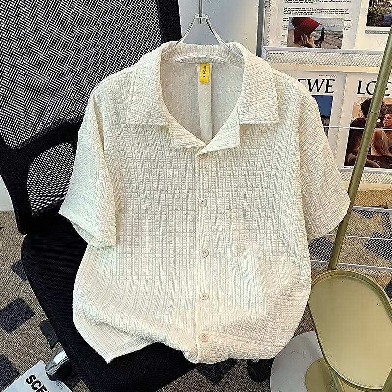 Whether you're enjoying a day at the beach or relaxing with friends, this Cuban collar shirt will keep you stylish and comfortable. 🌊🍹 The relaxed fit and unique texture make it the ideal piece for hot summer days, offering both fashion and function.