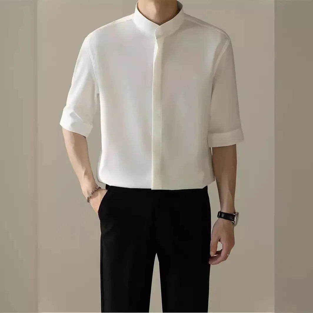 Ice Silk Summer Shirt β Slim Fit, Vertical Collar