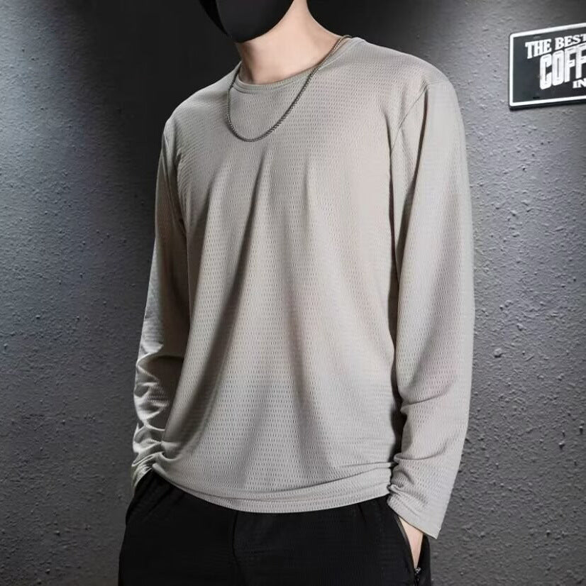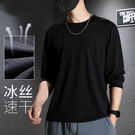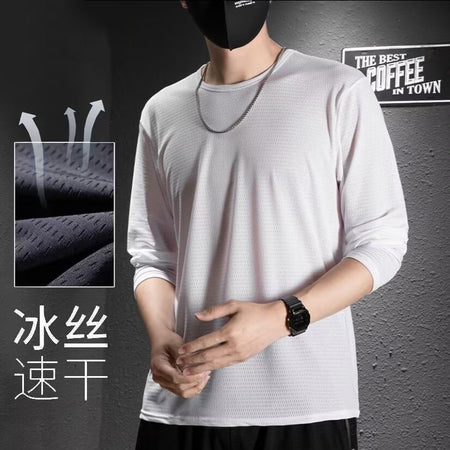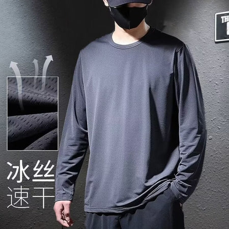 Men’s Mesh Ice Silk T-Shirt – Long Sleeve, Quick-Dry