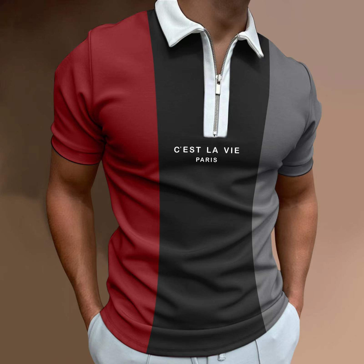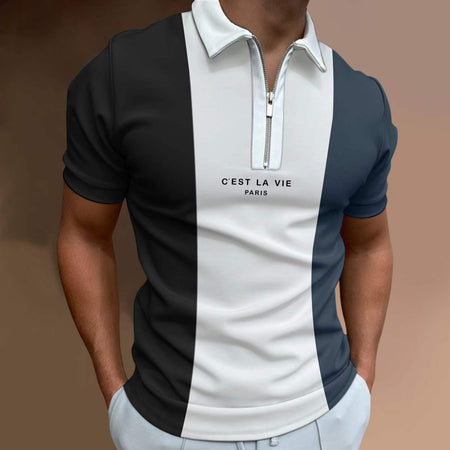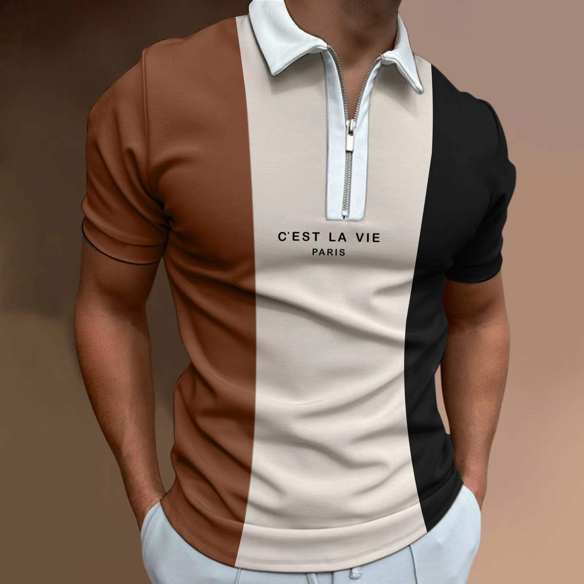 Casual Color-Matching Polo Shirt β Trendy Zip Design for Men