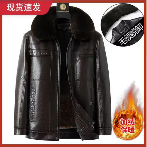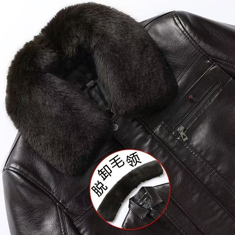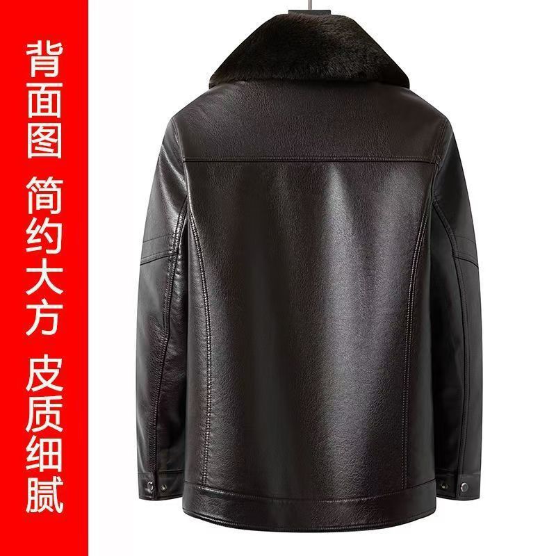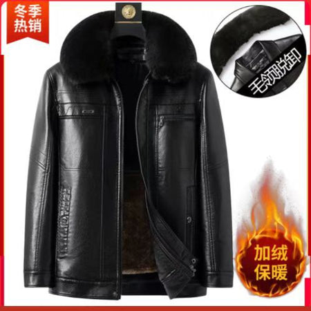 Thick Fleece-Lined Leather Jacket for Middle-Aged Men