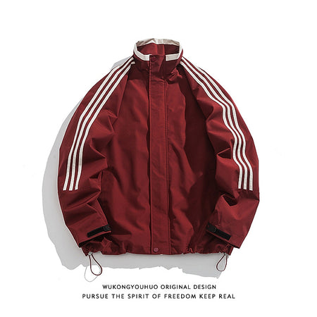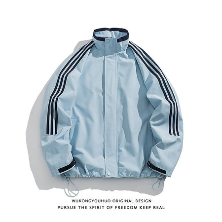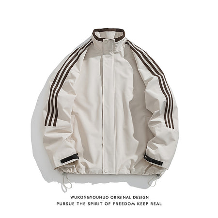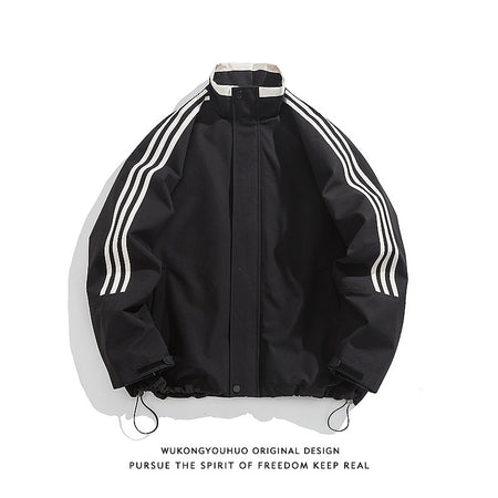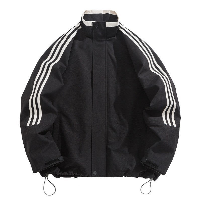 Turn heads with the retro three-bar vertical collar jacket ποΈ. Inspired by classic athletic wear, this unisex jacket offers a loose streetwear vibe with modern versatility.