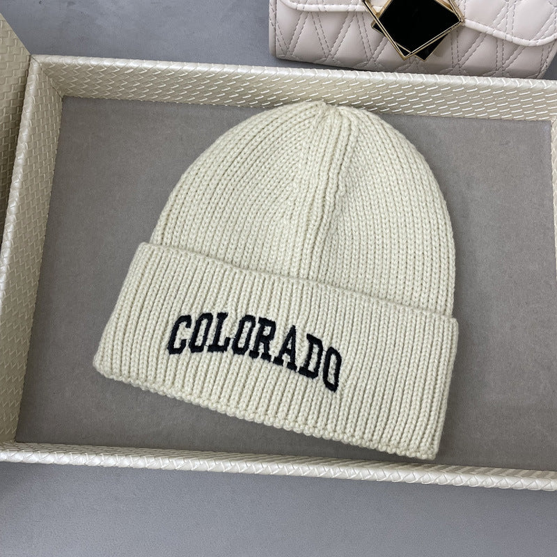 Unisex Korean White Wool Hat – Autumn/Winter Knitted Letter Beanie