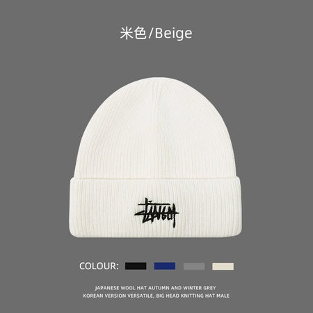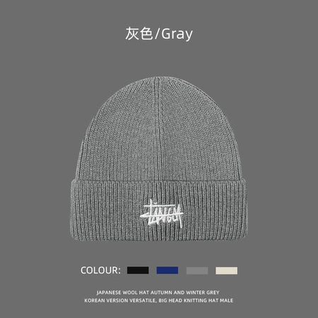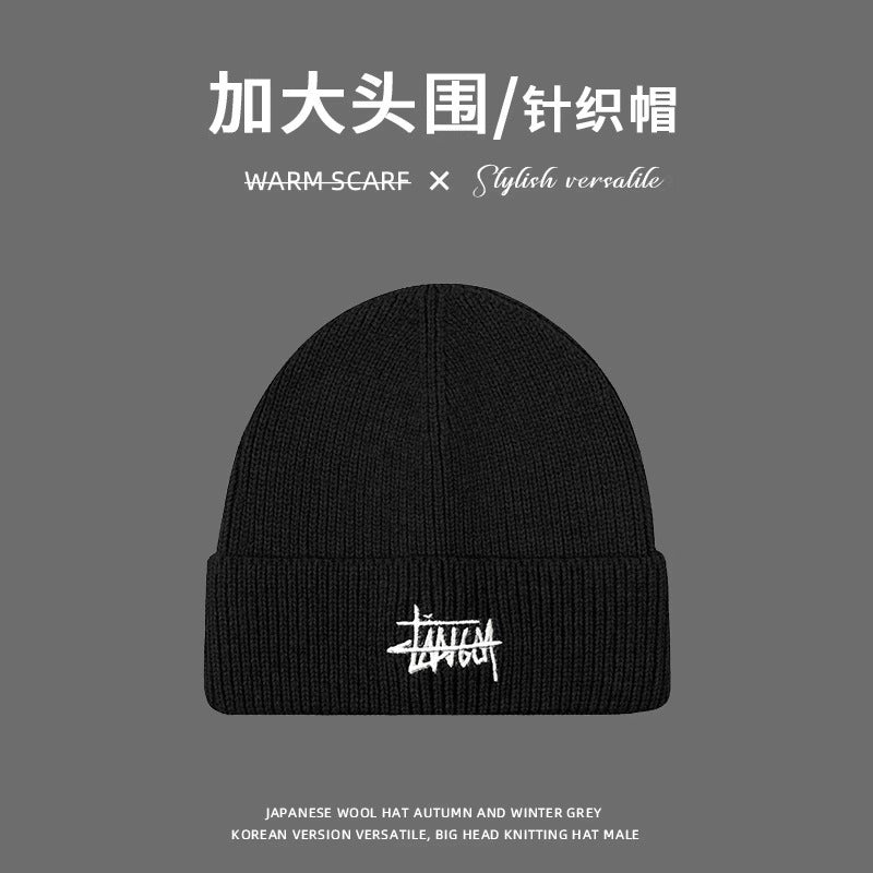 Unisex Large Head Wool Hat – Autumn/Winter Korean Knitted Beanie
