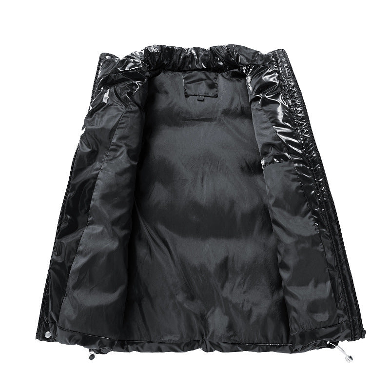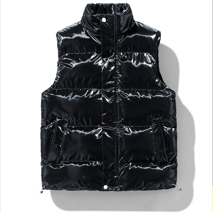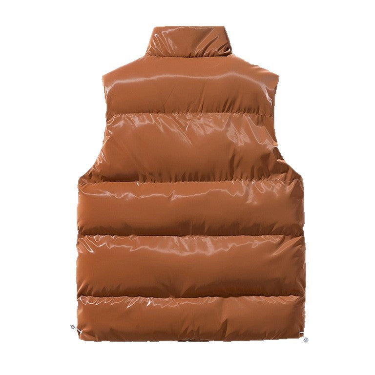 Stay warm and stylish during spring and autumn with our plus-velvet warm cotton vest, designed for both men and women. This casual waistcoat features a stand-up collar and a shiny short-sleeved design, perfect for layering over shirts or casual tops.