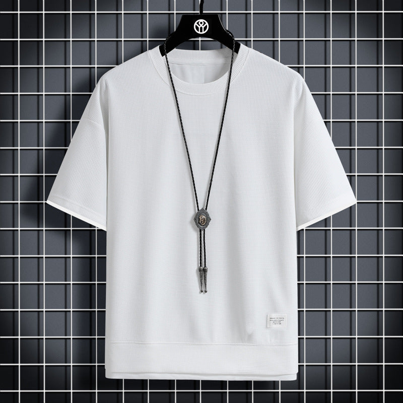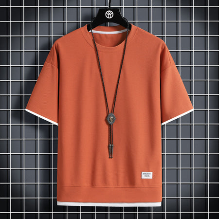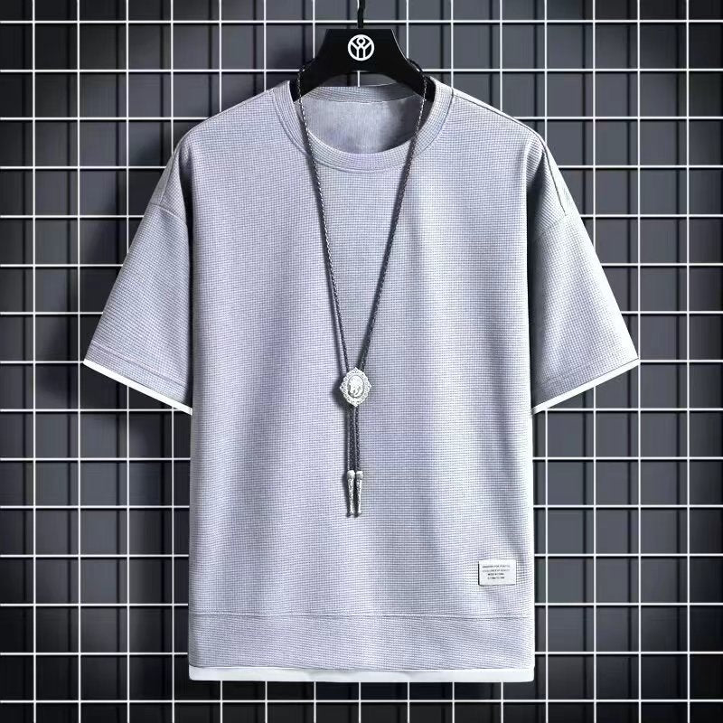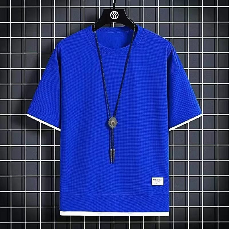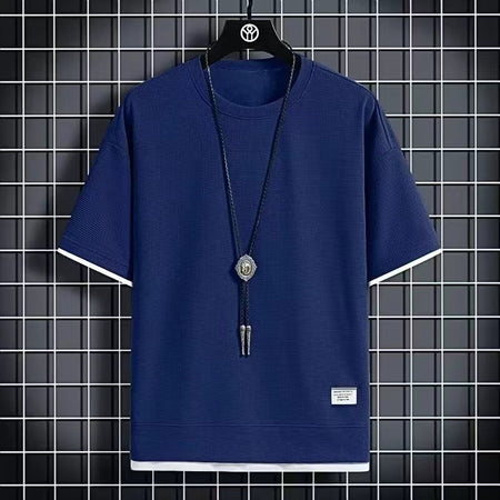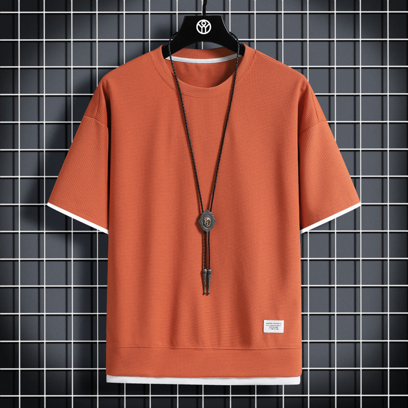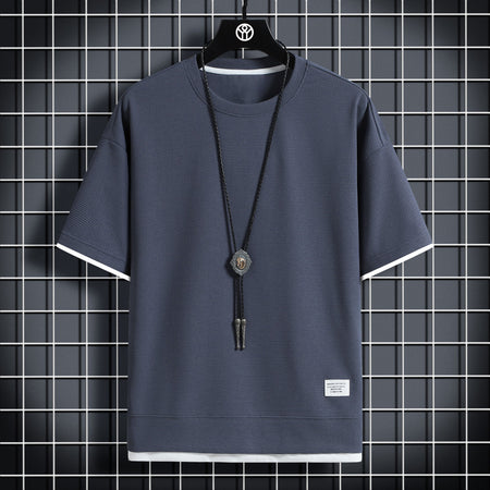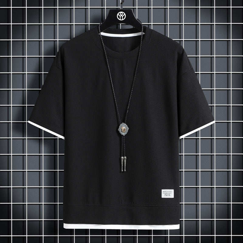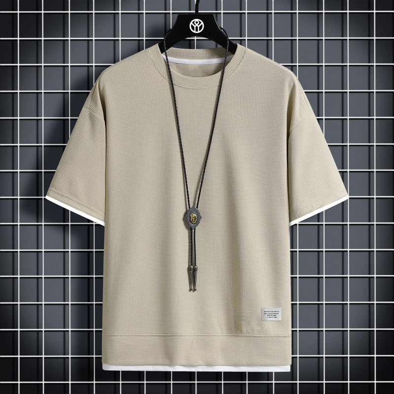 Waffle T-Shirt – Fake Two-Piece Summer Loose Fit for Men
