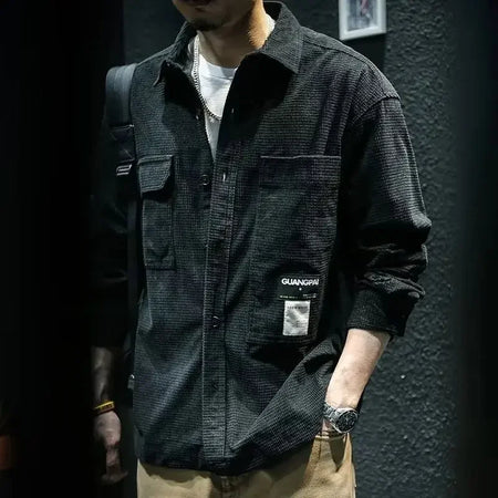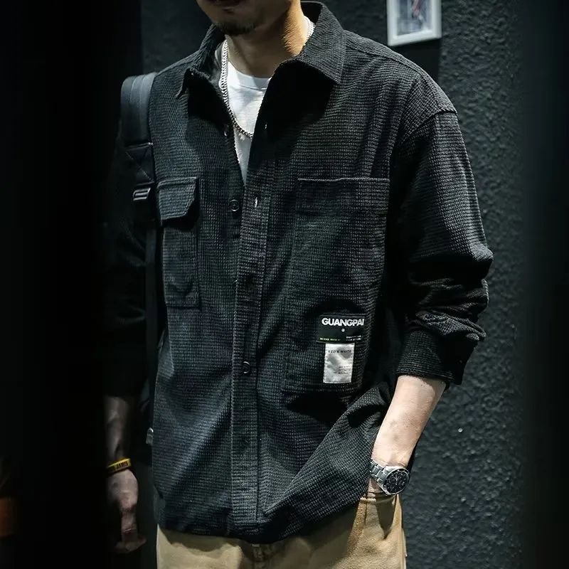 Men’s Waffle Workwear Shirt | Retro Loose Jacket Style