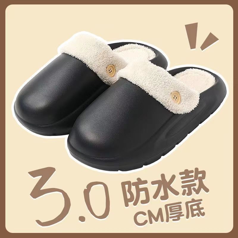 Waterproof Cotton Slippers Men’s Winter Fleece-Lined Non-Slip